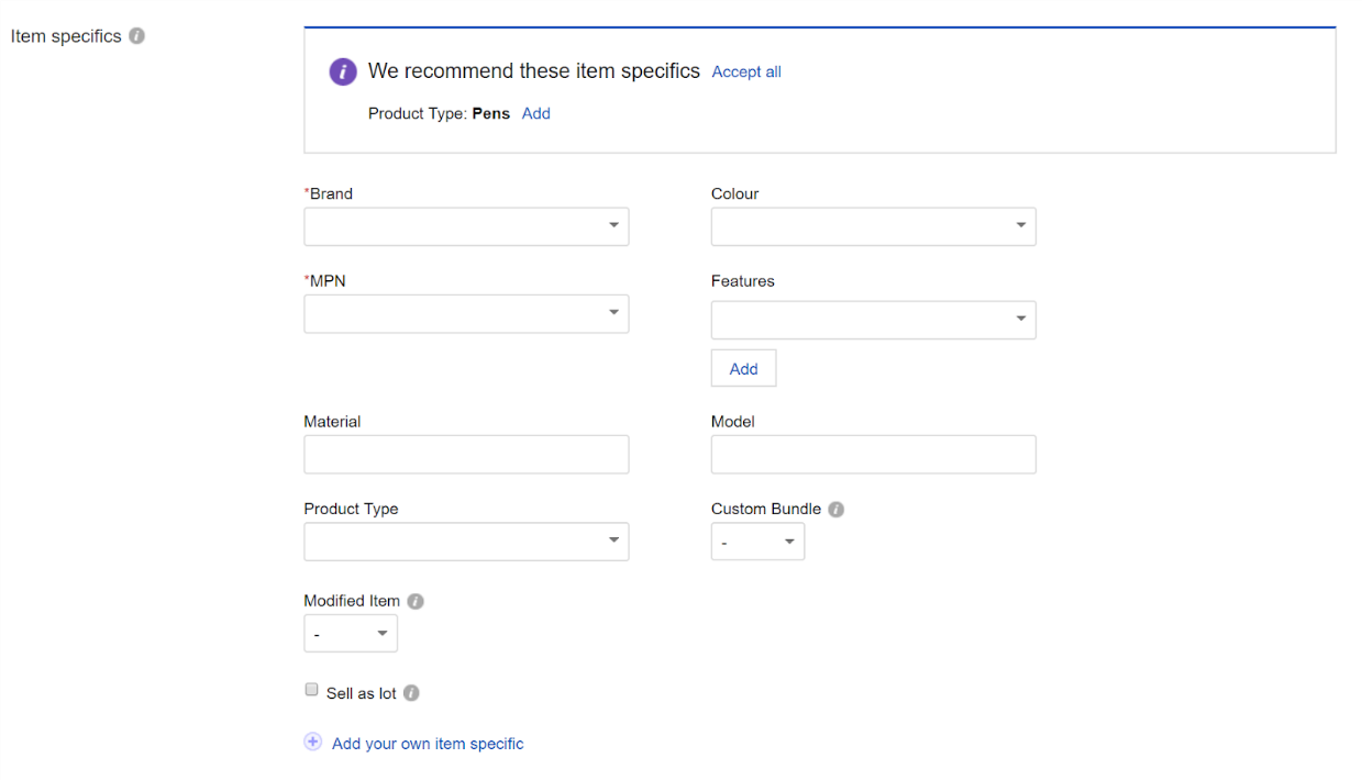 如果您在新創建物品刊登時不使用eBay建議的物品屬性,當買家使用eBay站內左側巡覽列的細化導航時,您的物品將不會出現在買家面前。
