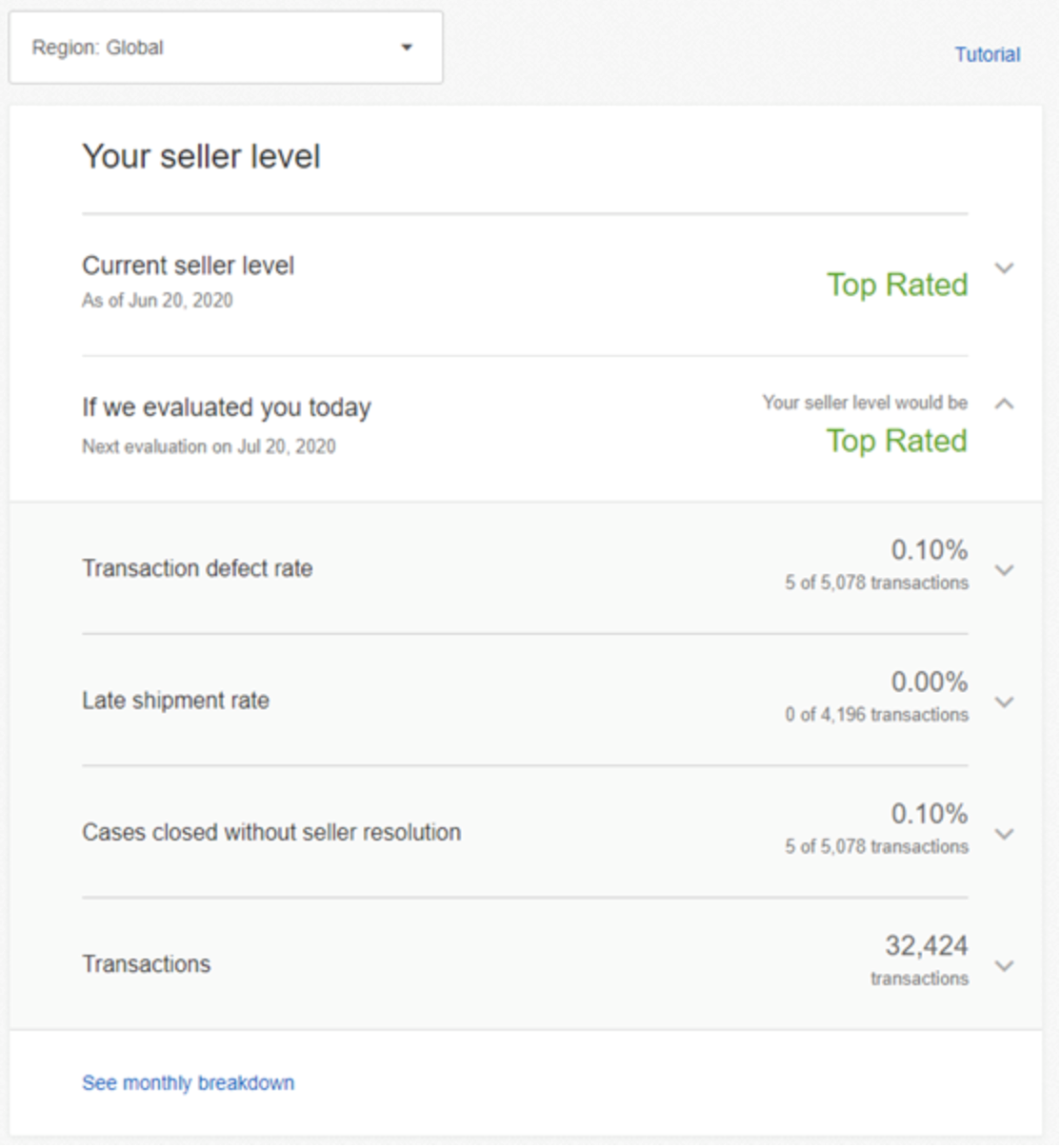 當前賣家級別對應seller dashboard中的「Current seller level」。