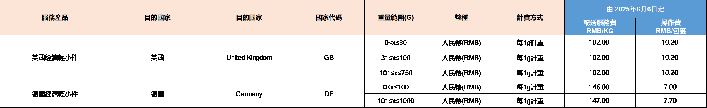 關於 2025 年 6 月 6 日起 SpeedPAK 服務相關目的地運費調整的通知