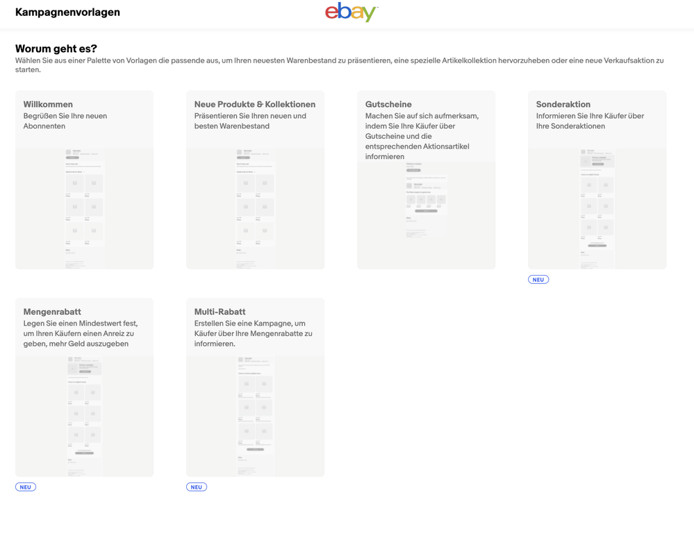賣家使用eBay店鋪的通訊簡報(Store newsletter)功能,可以輕鬆地與訂閱者和買家群組溝通。 賣家可以使用以下通訊簡報範本: