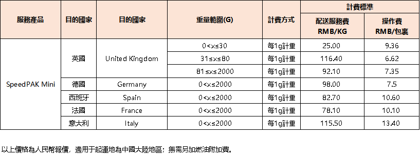 SpeedPAK中國大陸始發