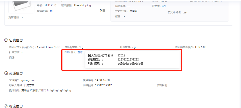 2. 包裹管理介面EU代理人相關操作