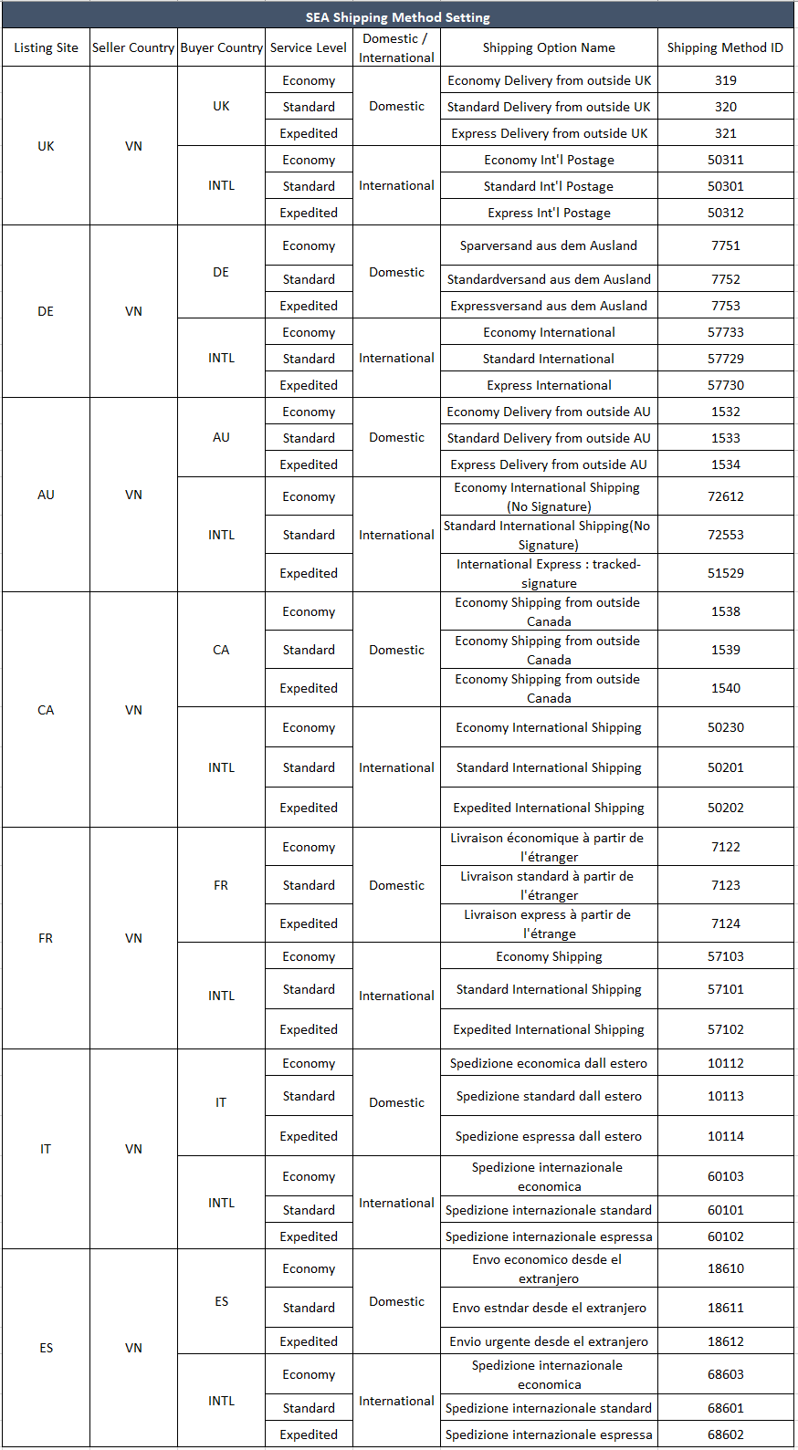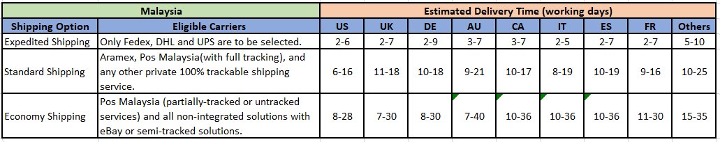 - If you choose to use semi-tracking or non-tracking logistics services, please set the shipping option to Economy Service.