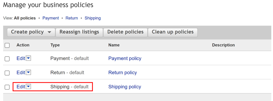 - Click on edit next to the shipping option – choose edit policy